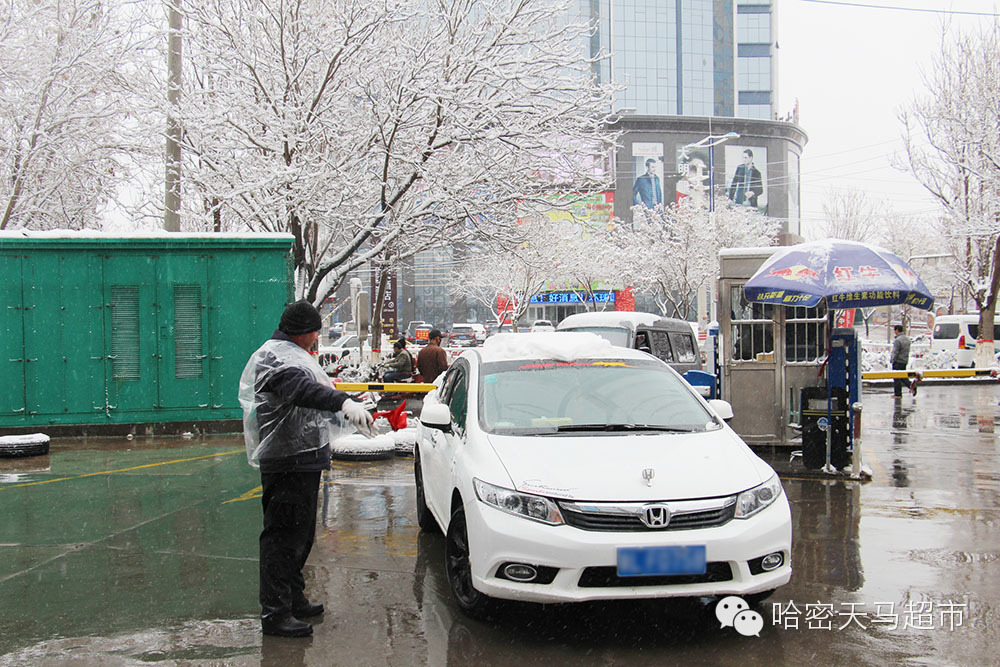 又是我们被人津津乐道的安保大叔上镜了~在雨雪交加的路口认真的指挥着车辆进出。