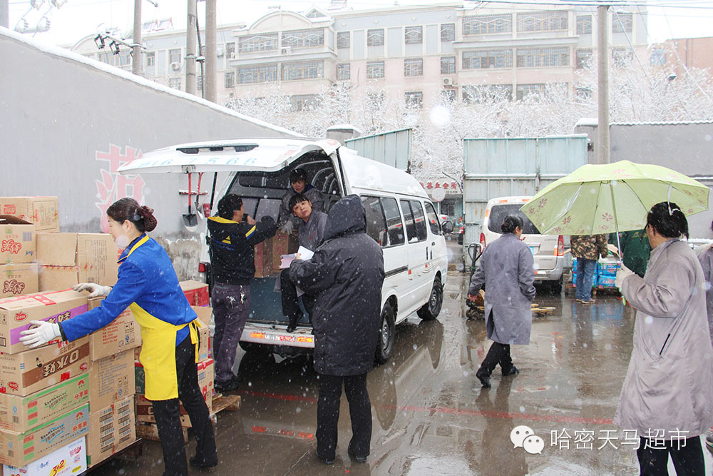 收货部也冒着大雪工作着~因为他们,才能保证货物的准时供应,同时也保护了货物免遭淋湿。