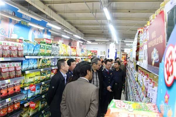 检查组重点检查了天马超市的食品一单通,抽查了天马超市履行索证索票和进货查验记录台账制度的执行情况,重点检查了乳粉专柜。现场还随机抽取了商品进行检查,并对天马超市的各项工作给与了肯定。