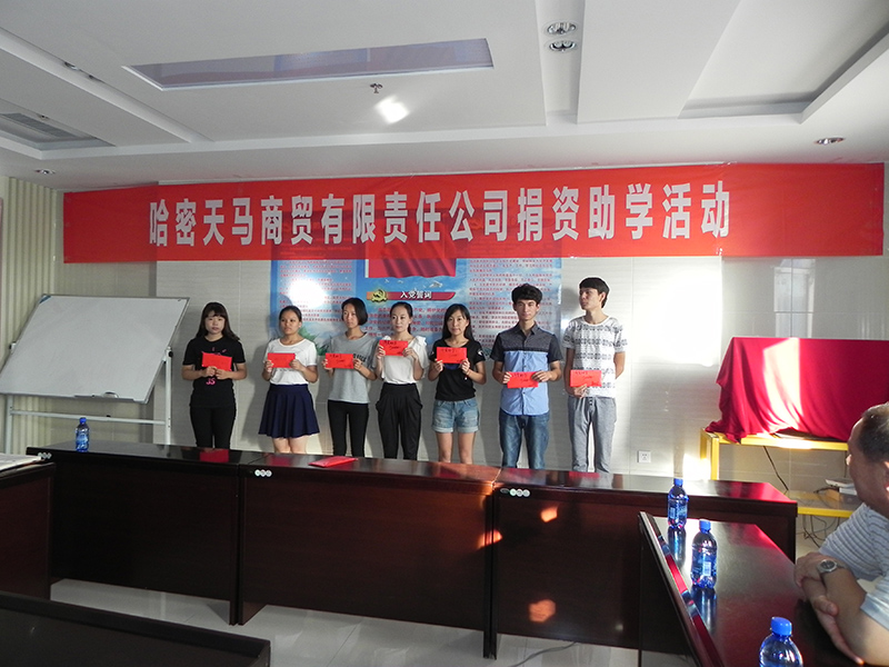 天马公司自成立以来,每年都会举办捐资助学活动,给每位大学生每年资助3000元直至毕业。贫困大学生由地、市团委、工会,丽园街道办事处,马场工会等单位推荐,经天马公司家访后,又有16位应届大学生得到资助,还有3位天马公司员工的子女被大学录取,并得到了奖励!希望他们再接再厉,以后成为栋梁之材!