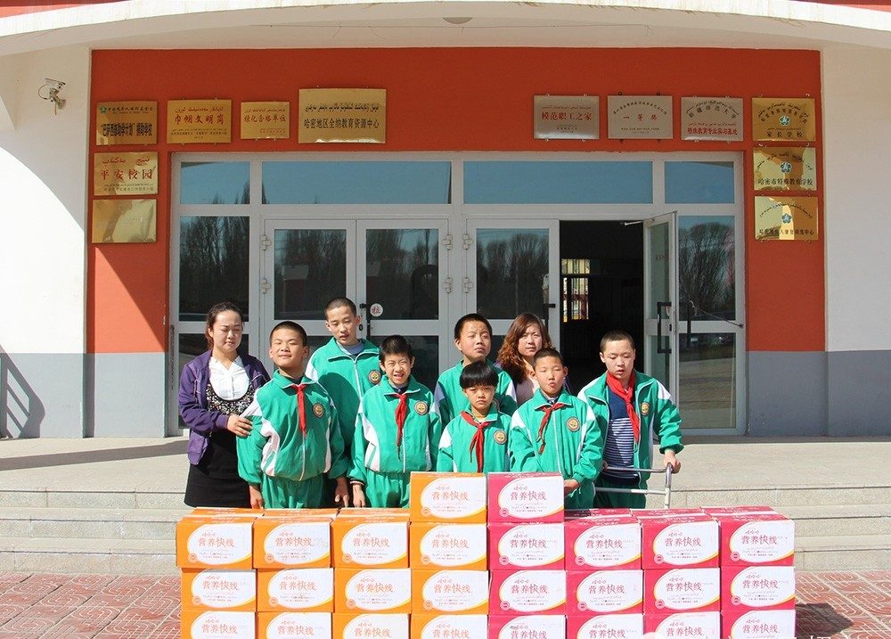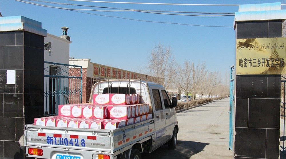 天马慰问组继慰问天山乡石城子村26户贫困家庭与这些家庭正在上学的孩子后,又慰问了哈密地区福利院,哈密特殊教育学校,哈密市三乡开发区学校,哈密市第四中学,哈密市第十中学,并给这些学校送去了价值32000元的娃哈哈营养快线。
