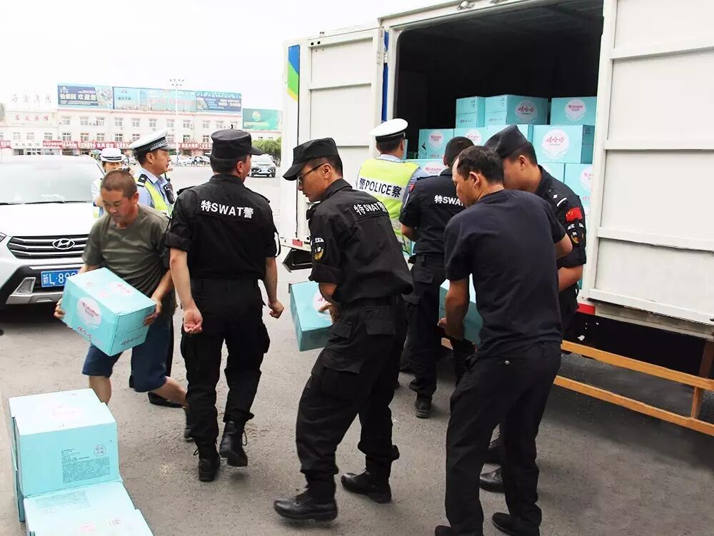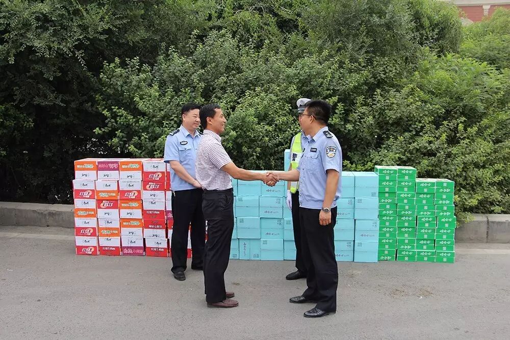 骄阳似火,热浪灼人,他们仍然坚守在一线巡逻防控,维护社会平安稳定,人民警察用辛勤的汗水铸就着人民的盾牌。6月29日上午,哈密天马公司为表达这份崇高的敬意,向他们送去了娃哈哈纯净水,康师傅方便面,娃哈哈八宝粥等慰问品并向他们的辛勤工作表示衷心感谢和诚挚敬意。